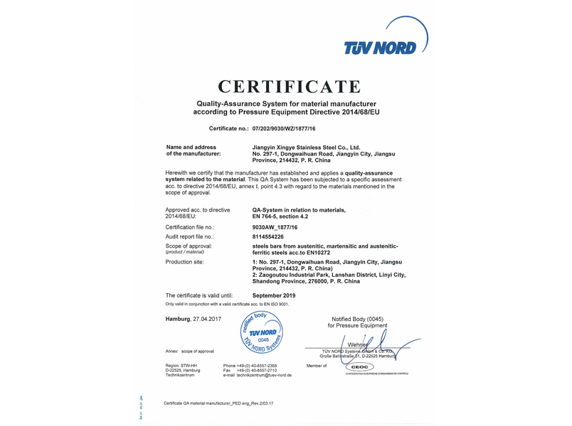 本公司按照ISO9001:2015質(zhì)量管理體系的標(biāo)準(zhǔn)要求,建立了質(zhì)量管理體系,并通過TUV認(rèn)證